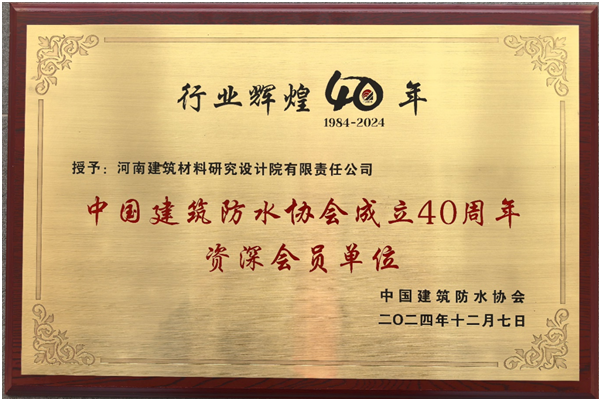 在“中國(guó)建筑防水協(xié)會(huì)成立40周年紀(jì)念大會(huì)”紀(jì)念盛典環(huán)節(jié),河南建筑材料研究設(shè)計(jì)院有限責(zé)任公司榮獲“40周年資深會(huì)員單位”稱號(hào)。河南建材院作為中國(guó)建筑防水協(xié)會(huì)首批且40年來(lái)一直堅(jiān)守的4家資深會(huì)員單位之一,始終秉持“團(tuán)結(jié)、創(chuàng)新、奉獻(xiàn)”的精神,積極參與協(xié)會(huì)的各項(xiàng)活動(dòng),支持防水建設(shè),為新質(zhì)生產(chǎn)力注入正能量,為協(xié)會(huì)的發(fā)展做出了卓越的貢獻(xiàn)。河南建材院40年來(lái)穩(wěn)扎穩(wěn)打,一步一個(gè)腳印,不僅在自身建設(shè)中取得了驕人的成績(jī),更是在協(xié)會(huì)的各項(xiàng)活動(dòng)中展現(xiàn)出了高度的組織紀(jì)律性和團(tuán)隊(duì)協(xié)作精神。憑借其在行業(yè)的較高影響力,為行業(yè)的綠色、健康、持續(xù)和繁榮發(fā)展貢獻(xiàn)了自己的力量,贏得了業(yè)界的廣泛認(rèn)可和贊賞。